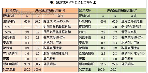1、戶內(nèi)外皺紋粉末涂料設(shè)計原理比較與分析