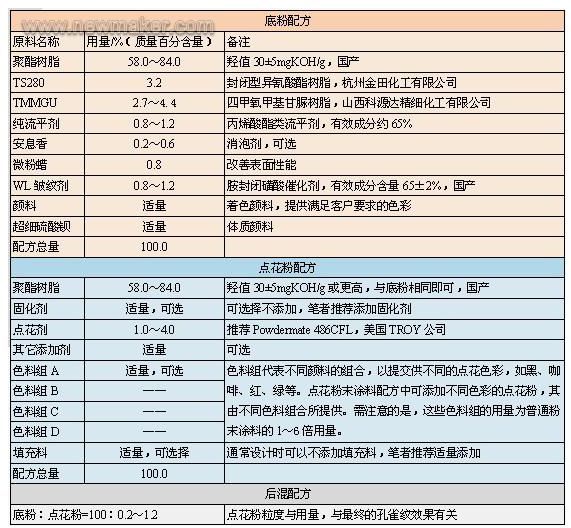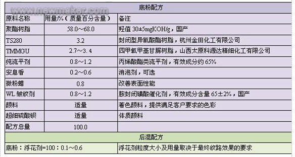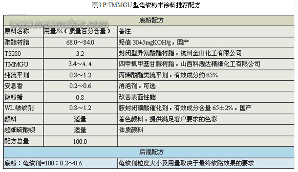 表4P/TMMGU型孔雀紋粉末涂料推薦配方